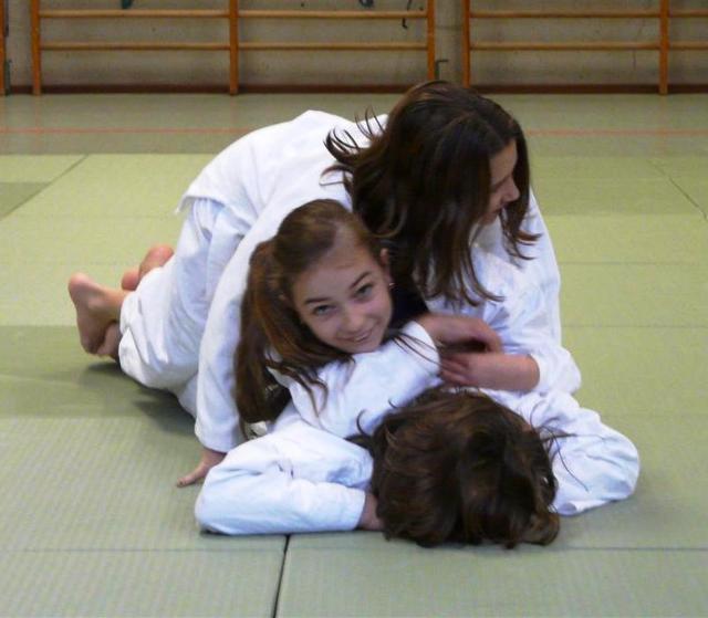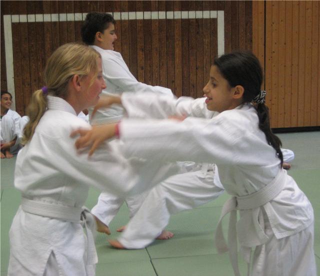 - Grenzen setzen und wahrnehmen („Kia“-Blitz, auf der Matte abklopfen als Zeichen der Beendigung des Kampfes)