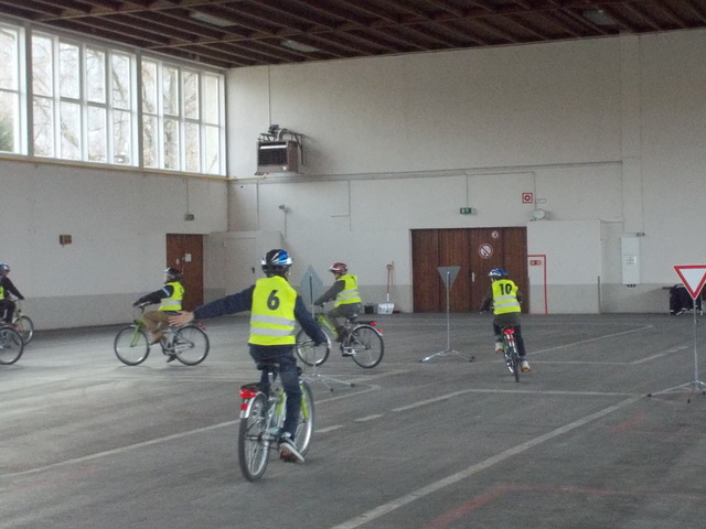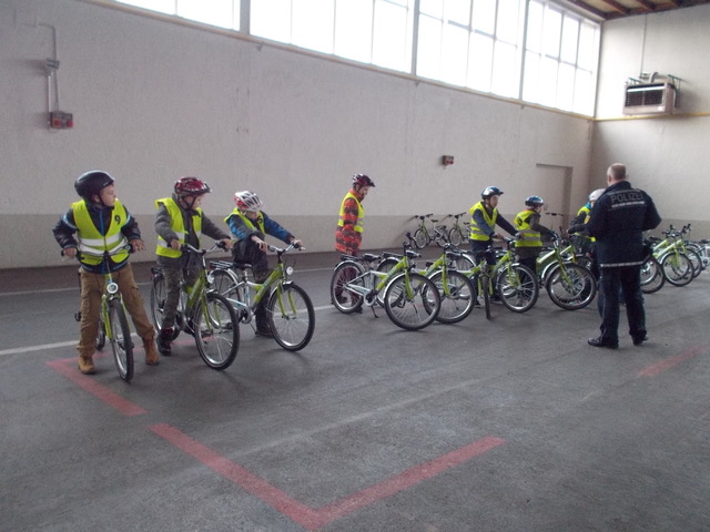 In Zusammenarbeit mit der Verkehrspolizei werden in Klasse 5 die Schülerinnen und Schüler auf die theoretische und praktische Radfahrprüfung vorbereitet.