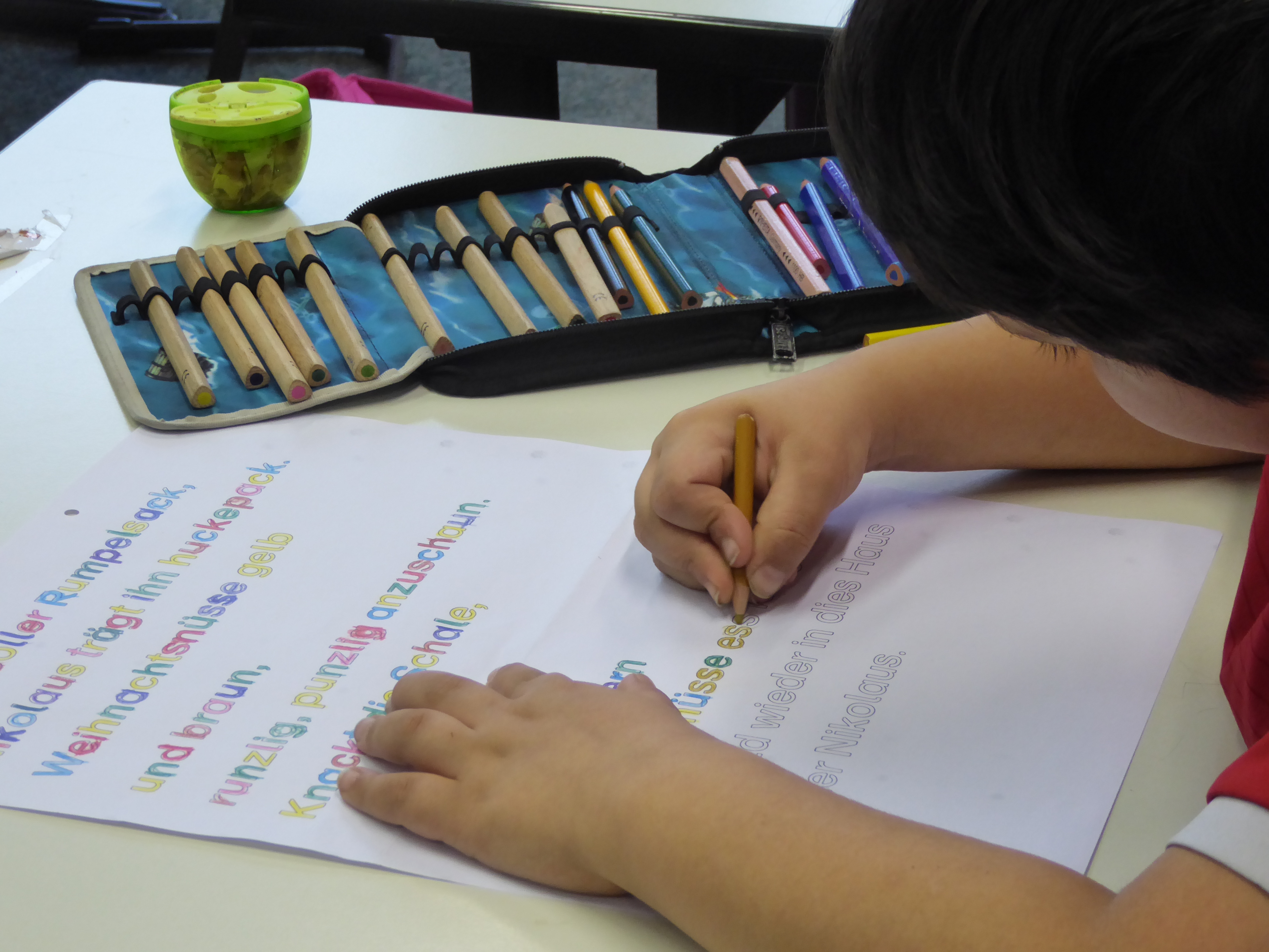 Lernen: Weil die Kinder gerne in der Gruppe sind, sich aufgehoben und wohl fühlen, lernen sie auch gerne. Für die Lehrerinnen ist ein genaues Beobachten des Kindes möglich. Gezeigte Interessen und Fähigkeiten, aber auch Schwierigkeiten können aufgegriffen werden. So kommt es zu einer Individualisierung der Lernziele mit festgelegten Förderschwerpunkten. Diese werden festgehalten in einem individuellen Lern- und Entwicklungsplan. Wichtig ist uns dabei an den Stärken und Interessen des Kindes anzusetzen und ihm diese auch bewusst zu machen.